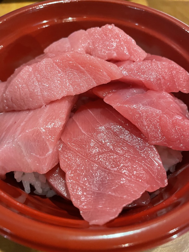 マグロ丼完成。築地の本マグロ丼の店の雰囲気だけどマグロの質と量が違います。(桁違いに上)