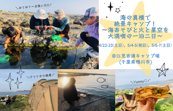 キャンプ初心者も他の家族とキャンプしたいベテランも♪ 磯遊び、キャンプご飯、焚き火、釣り…思いっきり遊びましょう!