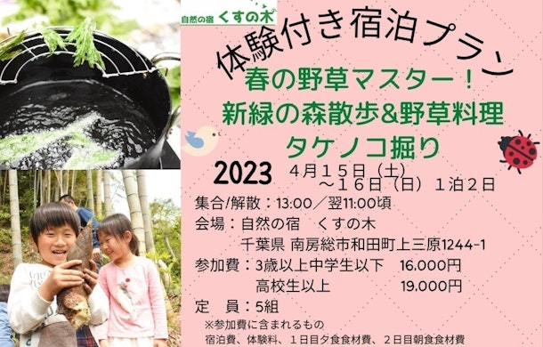 🏕春の野草マスター! 新緑の森散歩&野草料理&タケノコ堀り