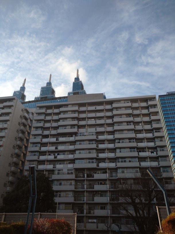 川崎市川崎区日進町。JR東海道線etc川崎駅の南側に位置する町で、町内には京急本線【高架橋】も通っている。駅近くには大きなビルやマンションなどが並び立っている。