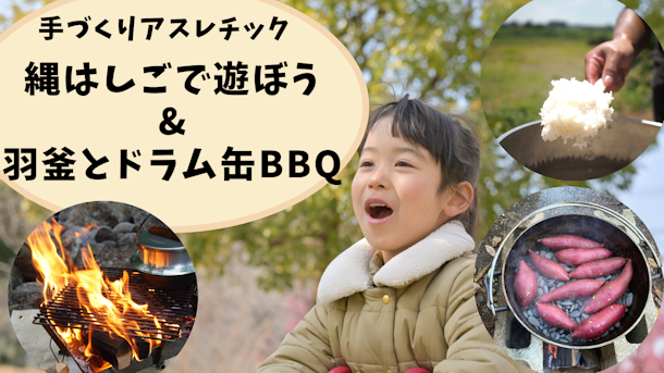 応援月間📣親子向け/縄はしご&羽釜とドラム缶BBQ&手作りアスレチック