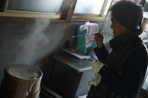 もち米は、古民家の裏にある田んぼで大切に育てたお米を使い、