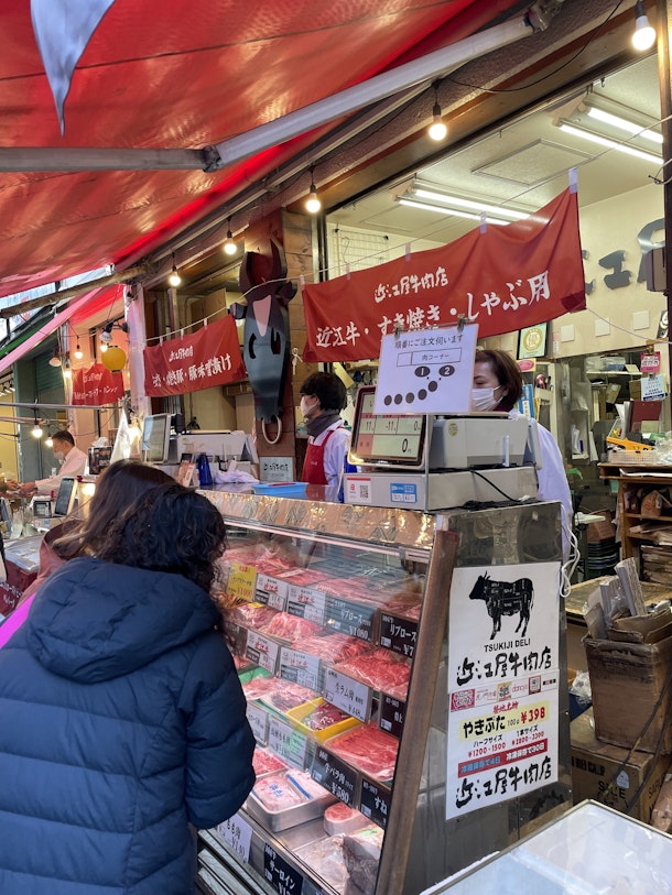 築地には肉屋さんもあります。近江牛にこだわってるお店です。
