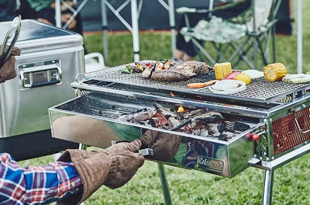 引き出し式ロストル(火床)なら、網の上に食材を乗せたまま炭の継ぎ足しやすいです。はじめてなら、組み立てやすいシンプルなものがおすすめ!脚を外して卓上でも使用できるツーウェイ仕様のものもあります。