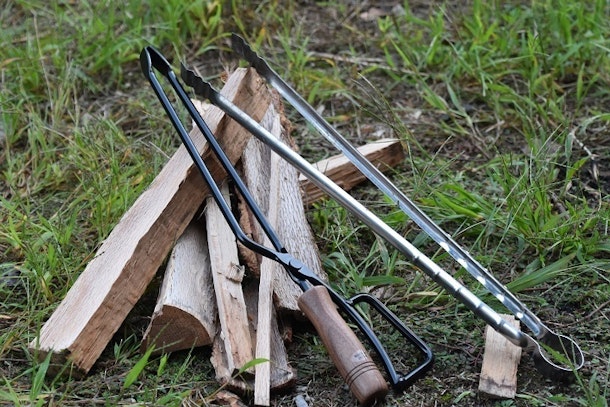 焚き火台やグリルを使うときは、トング、炭、着火剤、軍手が必要不可欠。食材、炭、薪などをつかむときに便利なトングは、食材と炭・薪で使い分けるために、複数の持参がおすすめです。