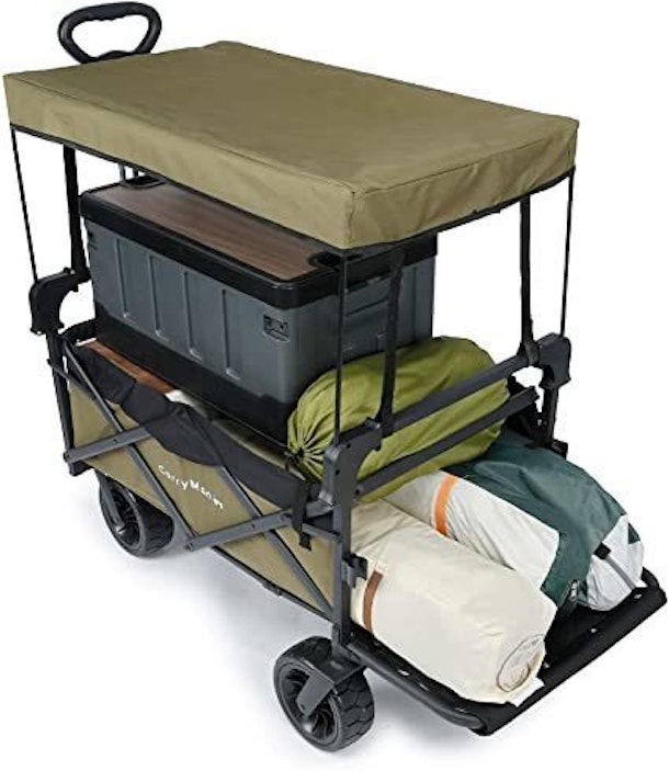 アウトドアワゴンは大量の荷物を一度に運べる便利なアイテムです。サイトに車の乗り入れができないキャンプ場で特に活躍します。車から下ろした荷物を引っ張ってテントサイトへ持って行けます。