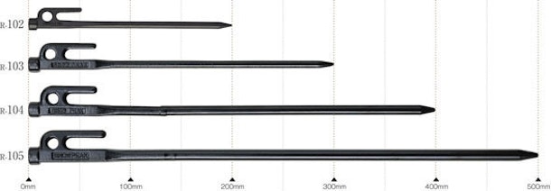 テントやタープが風で飛ばされないよう、生地につながったロープ(ガイロープ)を地面に固定する杭のこと。テント購入時に同梱されているものは悪天候時の固定力には不安が残る、そんな時は、頑丈な素材で作られている鋳造ペグがおすすめ。金属製はプラスチック製よりも地面が硬い場所や砂利にも打ち込みやすく、地中深くに打ち込めます。