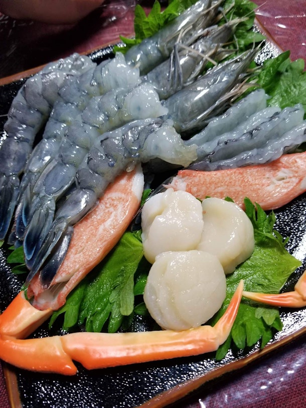 3人で1キロを剥き剥きして、生で刺身、茹でたり、ホットプレートで焼いたり、食べ尽くしました!