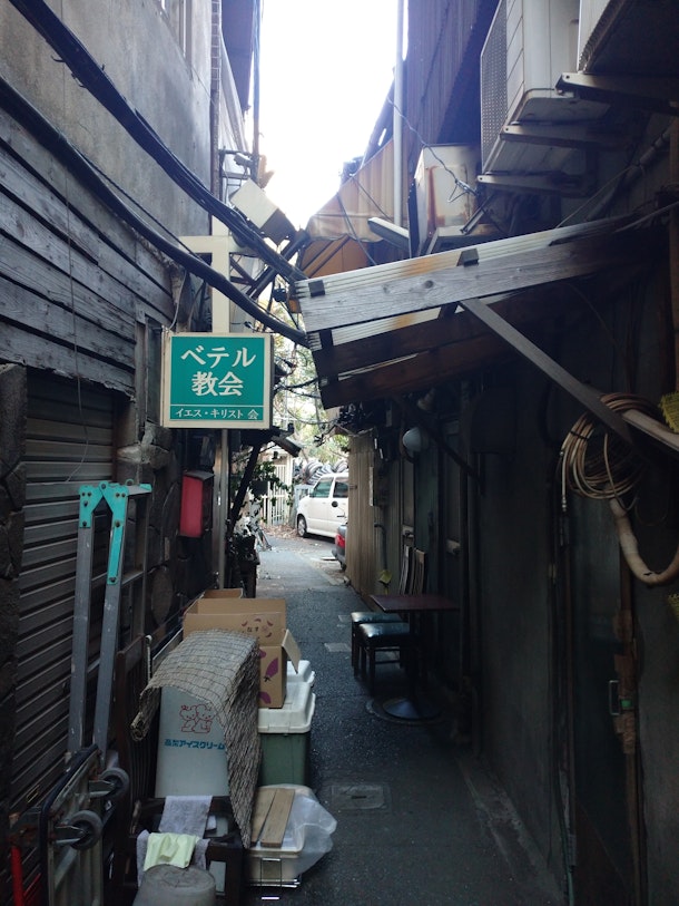 川崎駅の東北側(川崎区駅前本町)に位置するその場所は、激安の床屋、味のある教会⁉、魅惑的なスナックなど、ある意味香ばしい外観をした建物が残っているのである。