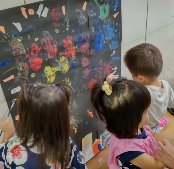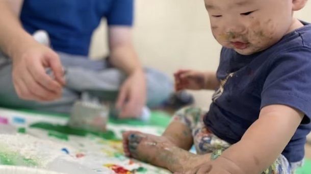 絵の具で色が変化していく様子をみたり、初めての感触に触れて脳を刺激したり🧠💡