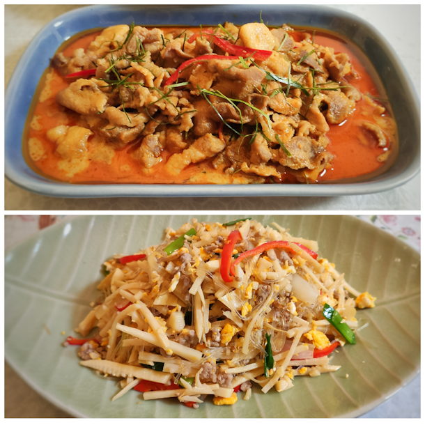 今回のメニューは、「豚肉のパネーンカレー」と「竹の子と春雨炒め」です。