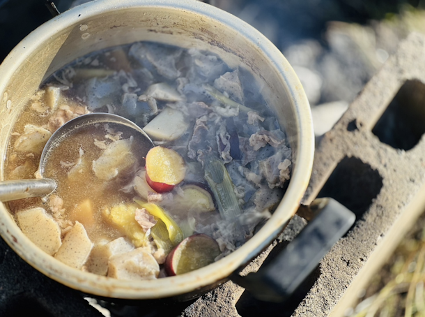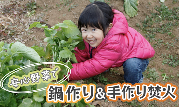 茨城県古河市で開催の体験【ファミリー向け"自然の野菜で鍋作り&手作り焚火で冬を楽しもう!"】です。