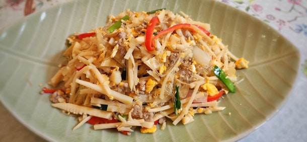 竹の子たっぷり入っている炒めもののお料理です。辛くなくて子供も大人も楽しめます。
