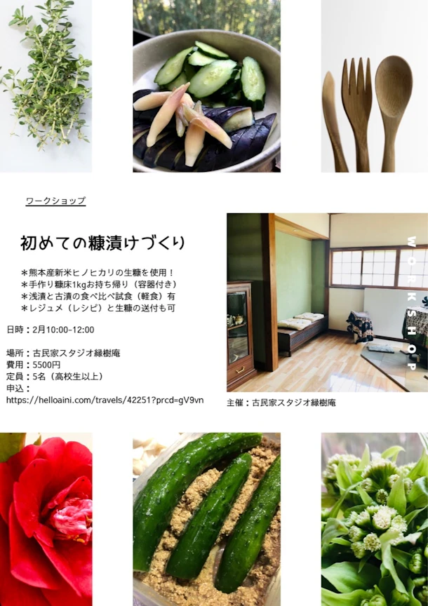 2/7火10時〜鎌倉古民家で生糠で作る糠漬けワークショップ開催します!