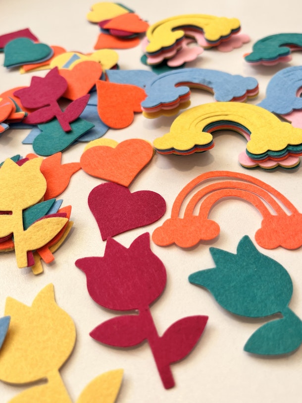 カラフルな筆ペンと海外から届いたモワモワのステッカーも、ちょっぴり入れておきますね!