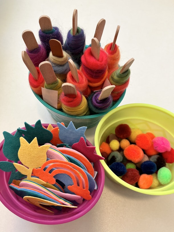 カラフルな筆ペンと海外から届いたモワモワのステッカーも、ちょっぴり入れておきますね!