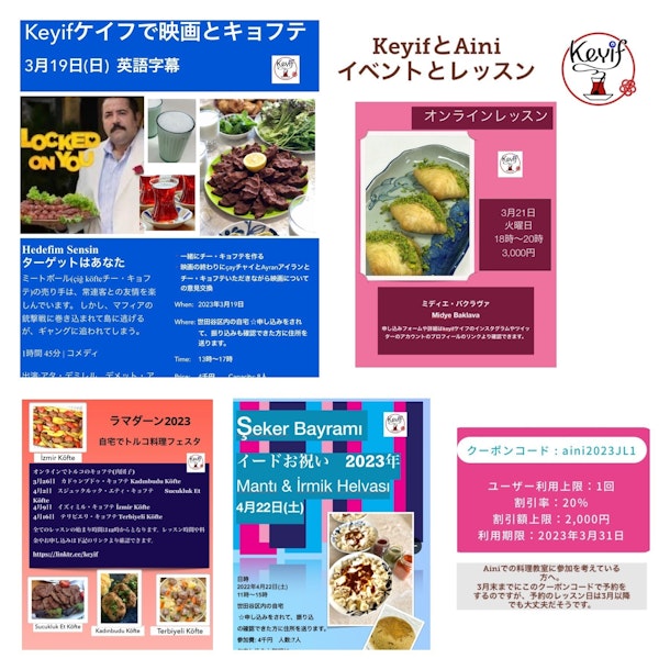 3月のKeyifでのスケジュールとAiniでの割引きクーポンコード👇