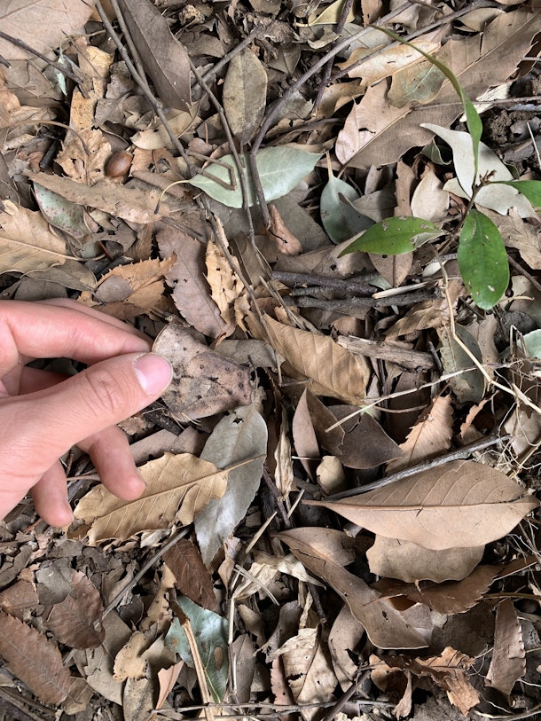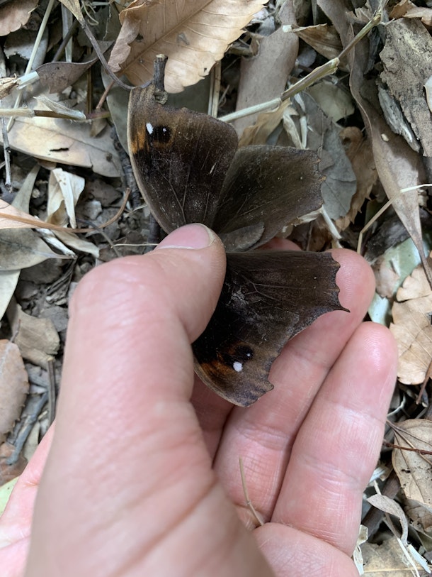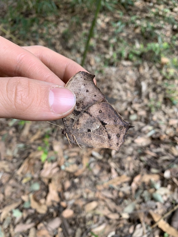 追いかけるとひらひら向こうに飛んで、こうやってとまります。葉っぱそっくりで、よく見ないと分かりません。これはまだみんなには難しいかも😏