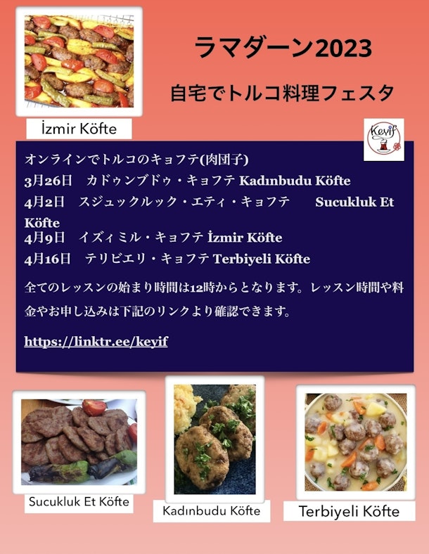 下記の全ては「ラマダーン中に自宅でトルコ料理フェスタ:肉団子シリーズ」のオンラインレッスン。