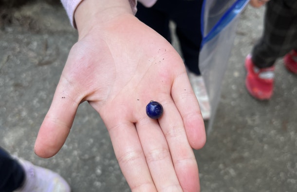 最初はメインの場所の炊事場で落ち葉を拾ったり、草を見つけたりしているうちに、青い実を発見してテンションアップ✨
