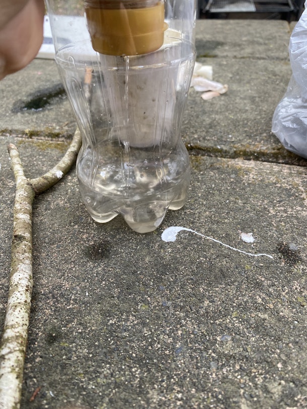 下に行くほど細くすればいいはずと試行錯誤。ドロドロの水を入れてみたら・・、