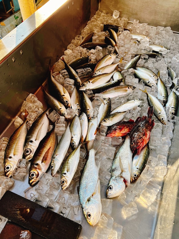 今回はあらかじめ相談をいただき、釣ったばかりのアジを刺身にしてちょこっと食べていただきました。