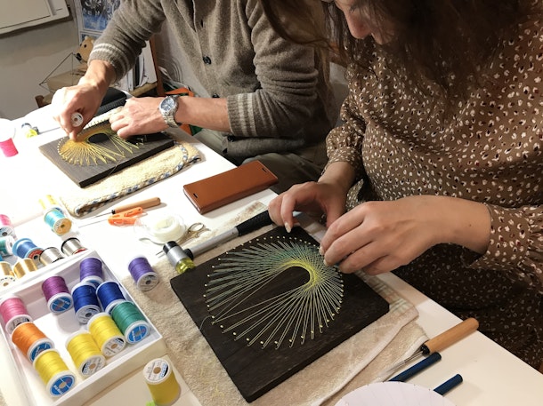 打ち込む釘の数が多かったり、金糸や銀糸の取り扱いが初心者さんにはむずかしいかなとドキドキだったのですが