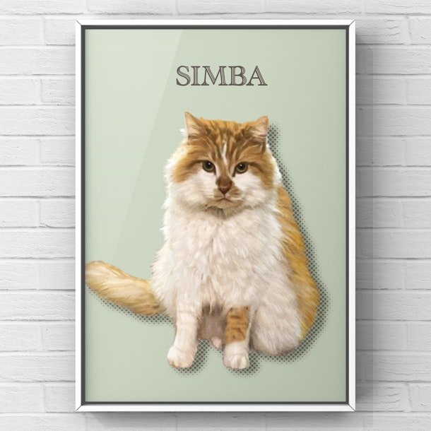 写真からネコちゃんだけ切り抜いて、色調補正し、画質を補うために毛などを描き足して、毛色を明るくして、黒目を大きくしました。