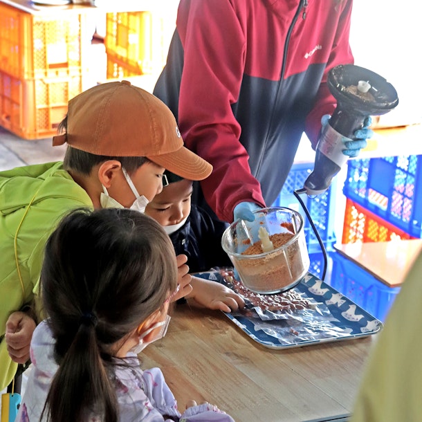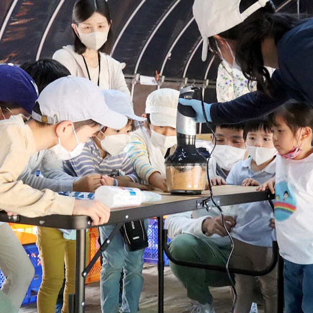 つぶつぶのピーナッツがなめらかに変わっていく様子に、子どもたちは、くぎづけです👀
