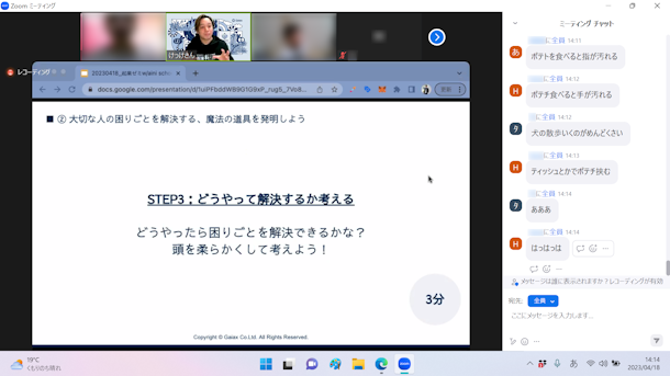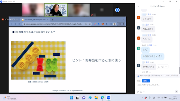 ホームルームでは、鯉のぼりのニュース記事からの「鯉のぼりの代わりに空に泳がせたいものは?」の質問に、次々と子どもたちのイメージが湧き上がり、そこから好きな食べ物の話にも発展!チャット空間も大盛り上がりでした♪