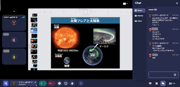 実際に衛星から撮られた生の映像と、ホリ博士の解説に魅了され、生徒さんからはどんどん質問が出ました。