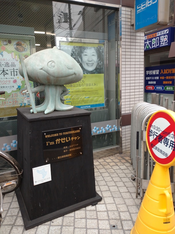 中野区若宮。西武新宿線 都立家政駅周辺に住む⁉かせいチャン⁉都立家政商店街のマスコットキャラ⁉もしくは宇宙人⁉ちなみに都立家政駅の南側の中野区若宮方向に銅像が・・・。