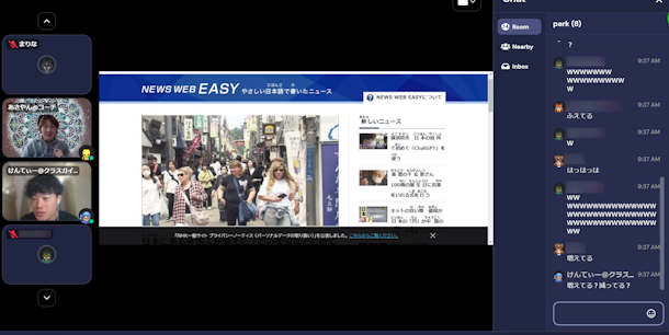 子どもたちは、ミュートを外して話したり、チャットで話したり、スタンプを押したりと、それぞれの表現方法で参加してくれています。タイピングがどんどん早くなっていて、クラスガイドは驚くばかりです!