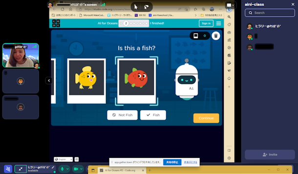 AIに学習させる前に、「これは魚かな?」「そう思う」「なぜ?」と、自分たちで話してみてから取り組みました。