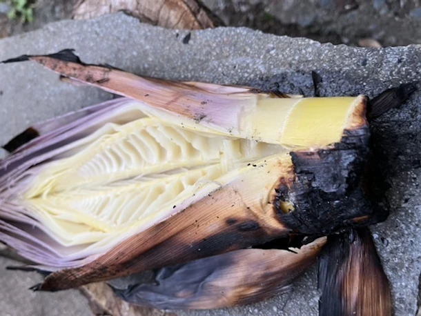 ちなみに、穂先竹を丸焼きするとこんな感じ。シンプル&ホクホク🎵
