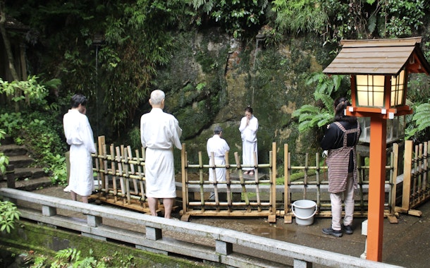 この滝行、現在もやっている人達がいます。5月14日日曜日午前9時過ぎより等々力不動尊の瀧轟会の皆さんが滝行します。