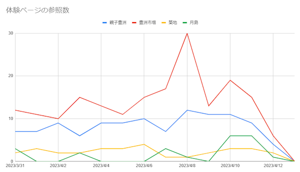 こう見ると、豊洲市場体験はやはりアクセス数が多い。ほとんどの方が初めて的なゲストが多い。