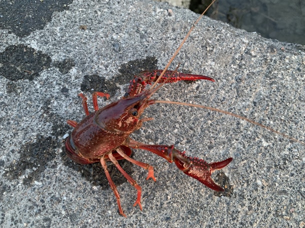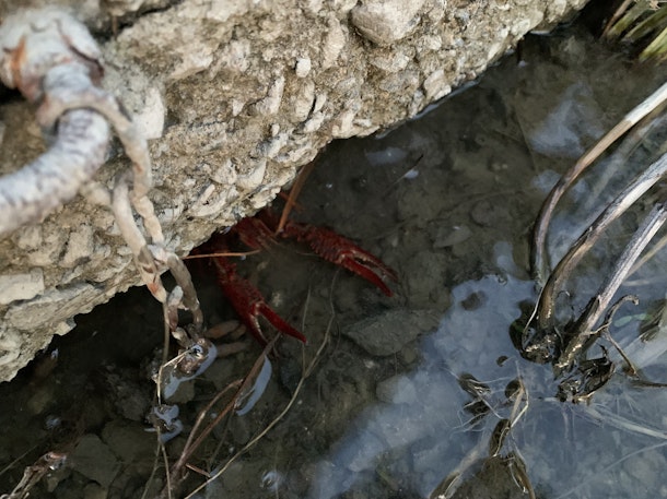 今日も近くの水辺をのぞくと、大きなザリガニが。思わず手づかみでキャッチしました✌️