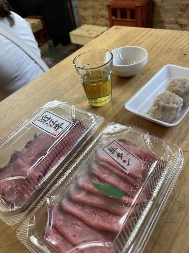 近江屋の近江牛のローストビーフ、牛たんは二つで1000円。