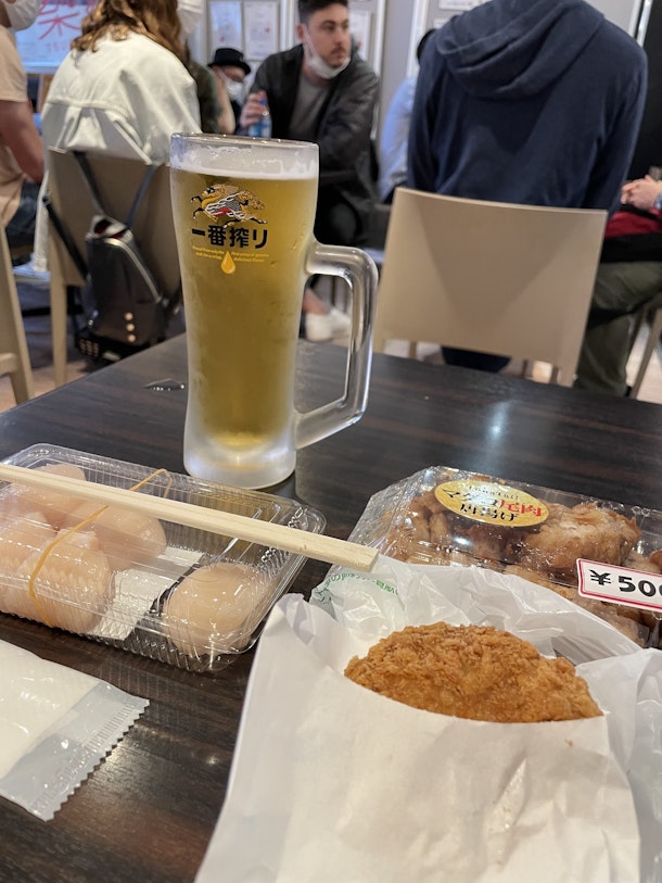 唐揚げにメンチ築地ぽく無いじゃん!?いいえ、これはマグロの唐揚げとメンチなのです。