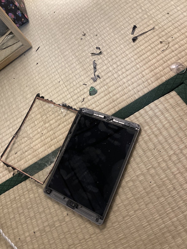 オンラインガイド用に使っていたiPadがこんな事になり、入院することになりました。
