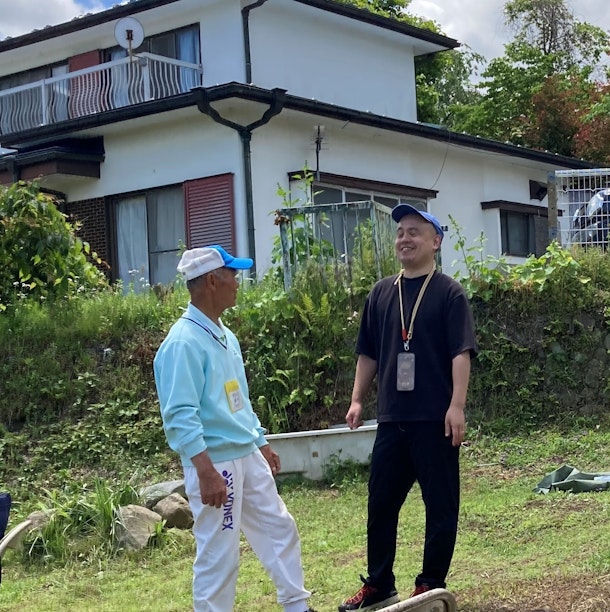 矢倉沢里山の会の“さく爺”とタカが、次回の体験のを相談している。