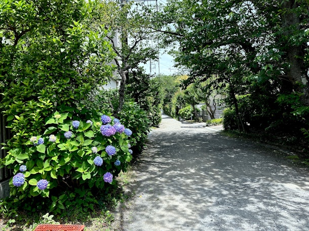 こちらは荏柄天神参道の紫陽花。昔のままの緑の道に、ぽっかりと紫陽花が浮かんでいるように見えました。(5/28撮影)