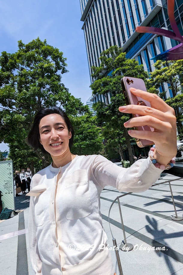 手をこんな感じ広げるポーズは、前だったら出来なかったかも、と楽しそうにお話されていました。そして、自撮りショットも楽しげです。