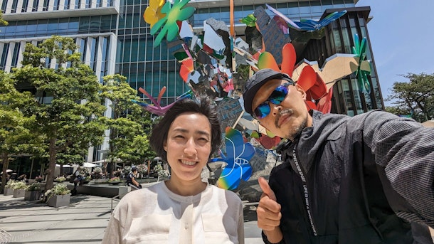 先に着席していてお待ちしていたのですが、店内を歩く雰囲気からして、以前とは違い華を感じました。お互いの近況報告などを小一時間ほどしたあと、モニュメント前に移動