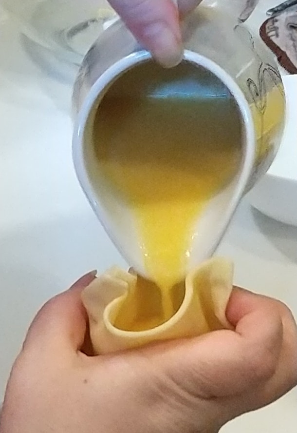 ホラズムと言えば世界遺産「ヒヴァ」です。砂漠の真ん中にある青いドームのオアシスで生まれたとぎ卵入りの水餃子です。生地からポケットを作り、中にとぎ卵ミクスをすすいで、しっかり閉じてゆでる。夏ですと冷ましてからスメタナ(サワークリーム)もしくはヨーグルトにつけて食べる。まさに夏料理!