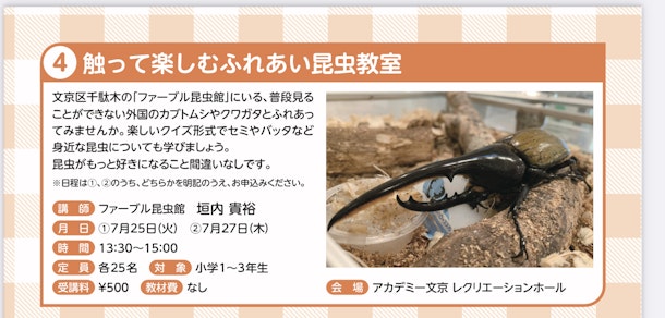 文京区は毎年夏休みに子ども向け講座をしており、他のプログラムも楽しそうです。
