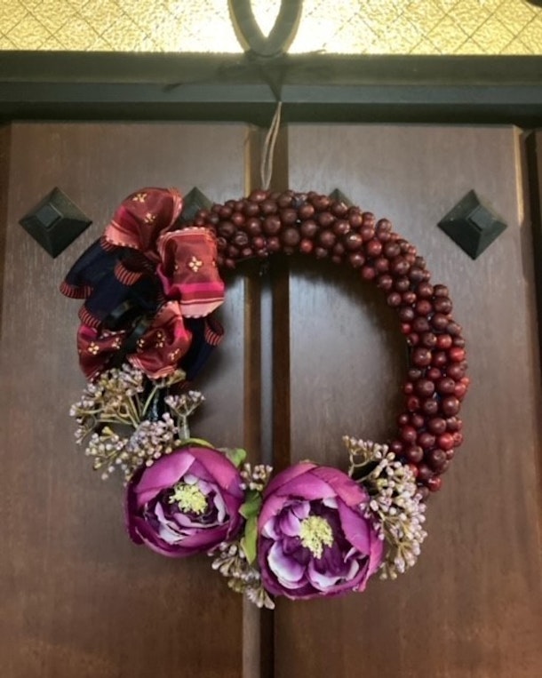 出来たリースはその季節や月になったら玄関に飾って楽しんでいます。