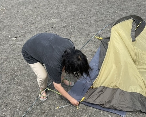 最近のテントはドーム型が多いのでテントをまったくたてたことのない人でも案外と簡単にたてられます。