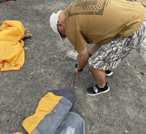 お二人とも真剣にお話をきいていただき、無事にタープも立てられました。